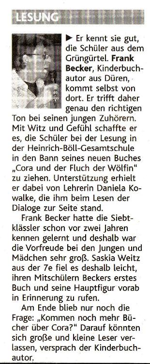 Artikel in der Dürener Zeitung vom 25.11.2010