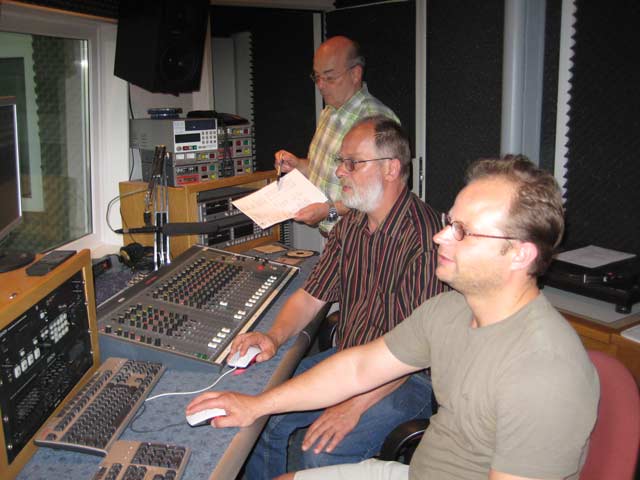 Thomas Schmitz, Günter Landgrafe und Heinrich Claßen (von vorne nach hinten) bei den letzten Vorbereitungen zur Sendung.