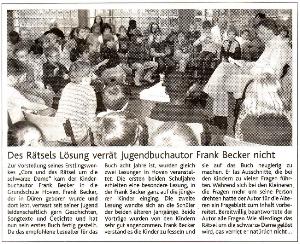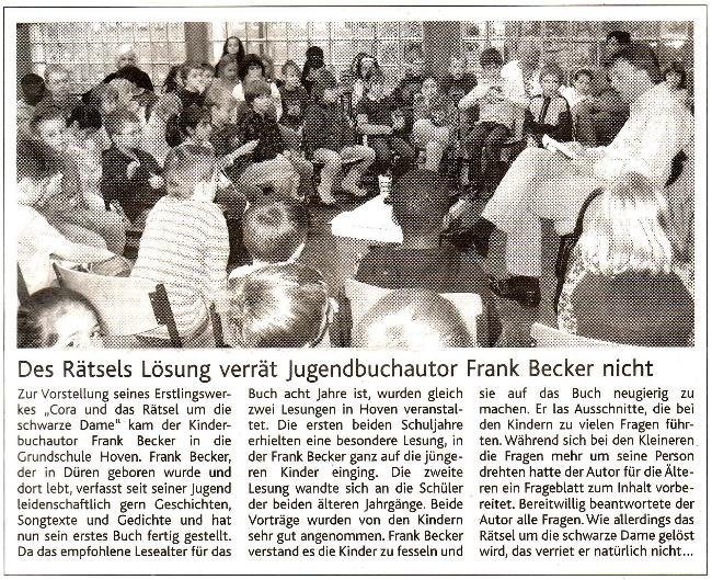 Am 12. Dezember 2008 erschien ein Zeitungsartikel über meine Lesung in der Grundschule Hoven.