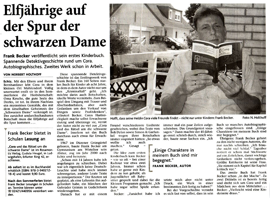 Am 25.07.2008 erschien in der Dürener Zeitung ein Artikel über mein Werk.